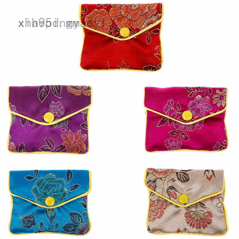Túi Đựng Tiền Xu Bằng Lụa Có Khóa Kéo Nhiều Màu Sắc Phong Cách Trung Hoa free ship