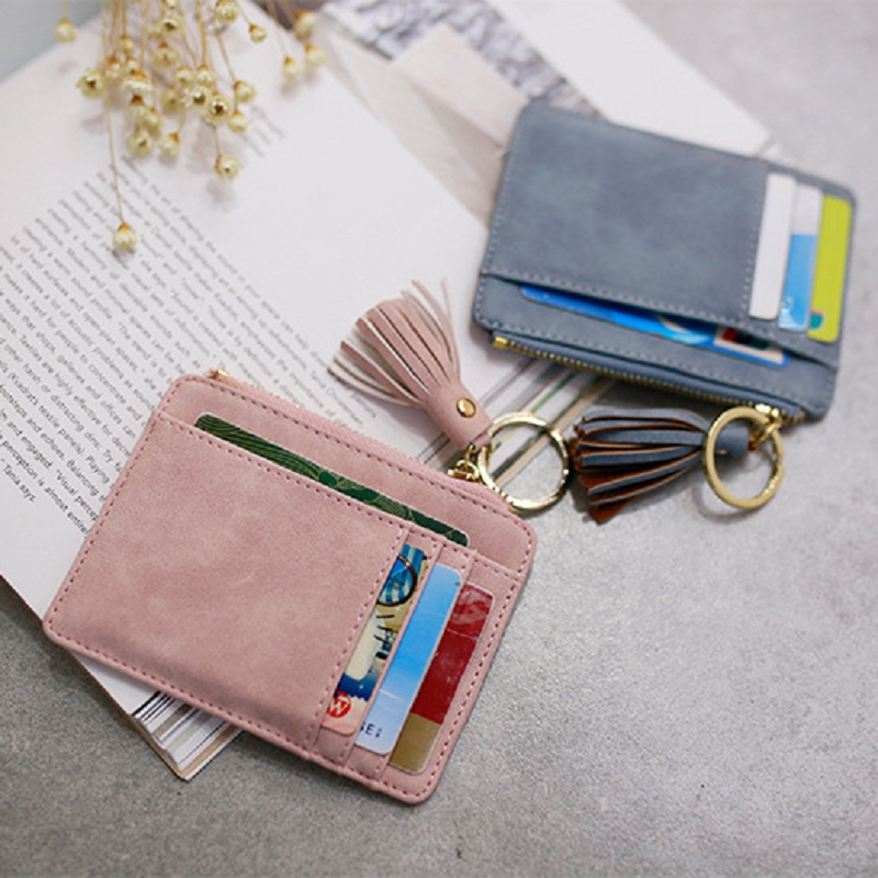 Ví mini đính núm tua đựng thẻ/ tiền xu/ tiền mặt xinh xắn dành cho nữ free ship