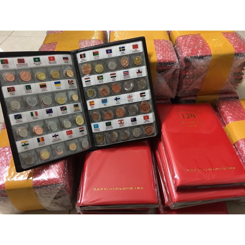Bộ 60 và 120 Tiền Xu Lưu Niệm Trên Thế Giới Được Lồng Phơi Và Cờ Các Nước Sẵn Kèm Album free ship